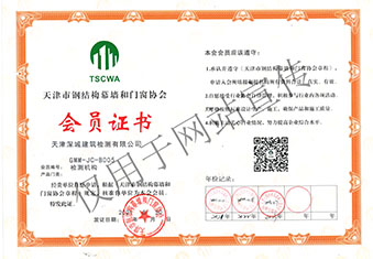 天津市鋼結(jié)構(gòu)門(mén)窗和幕墻協(xié)會(huì) 會(huì)員證書(shū)
